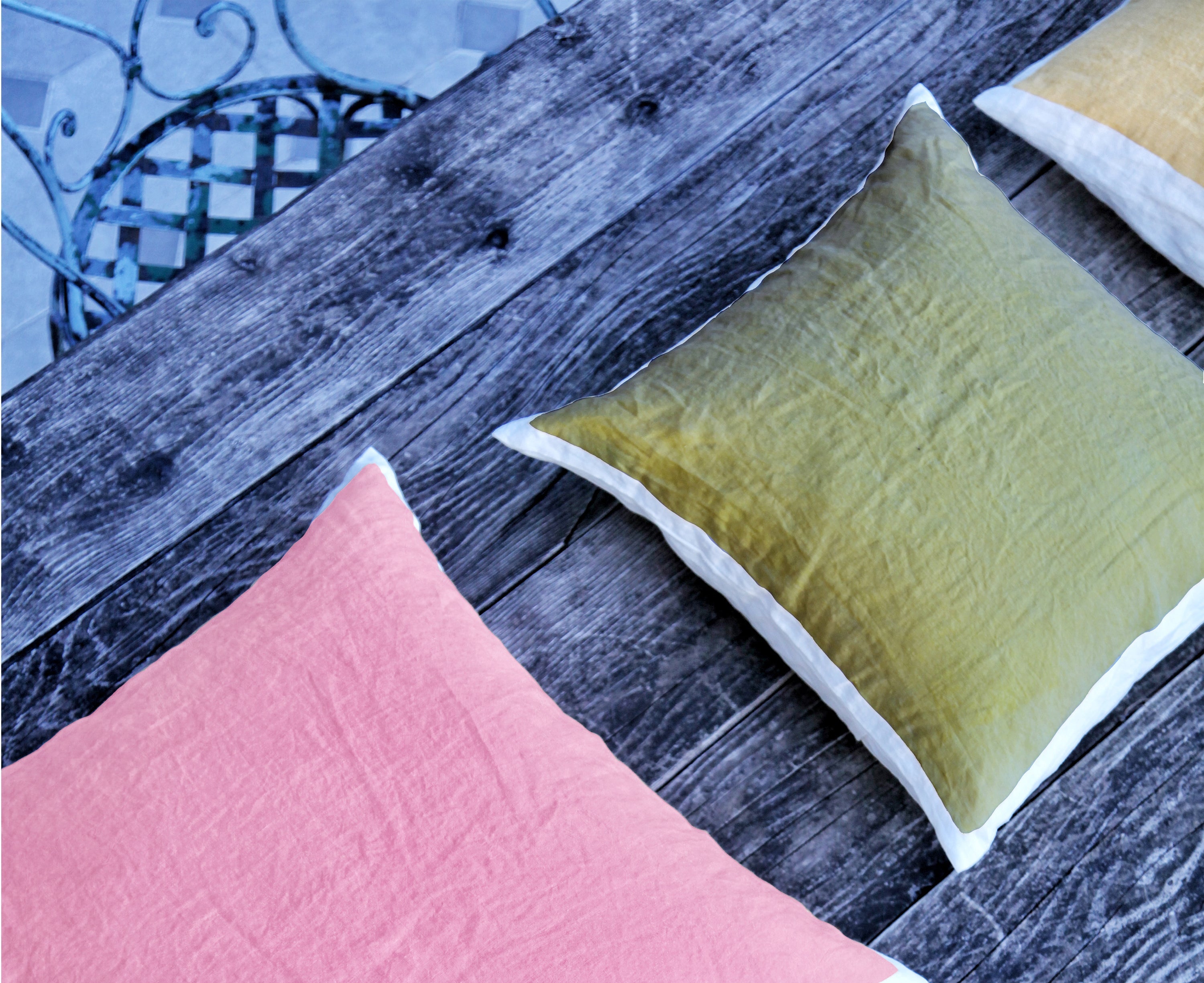 This hand painted rose pink cushion cover is made from 100% Italian linen.
