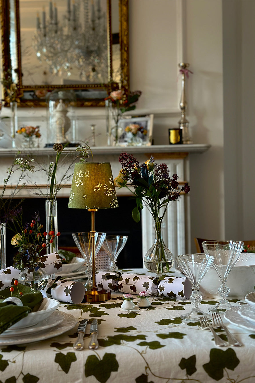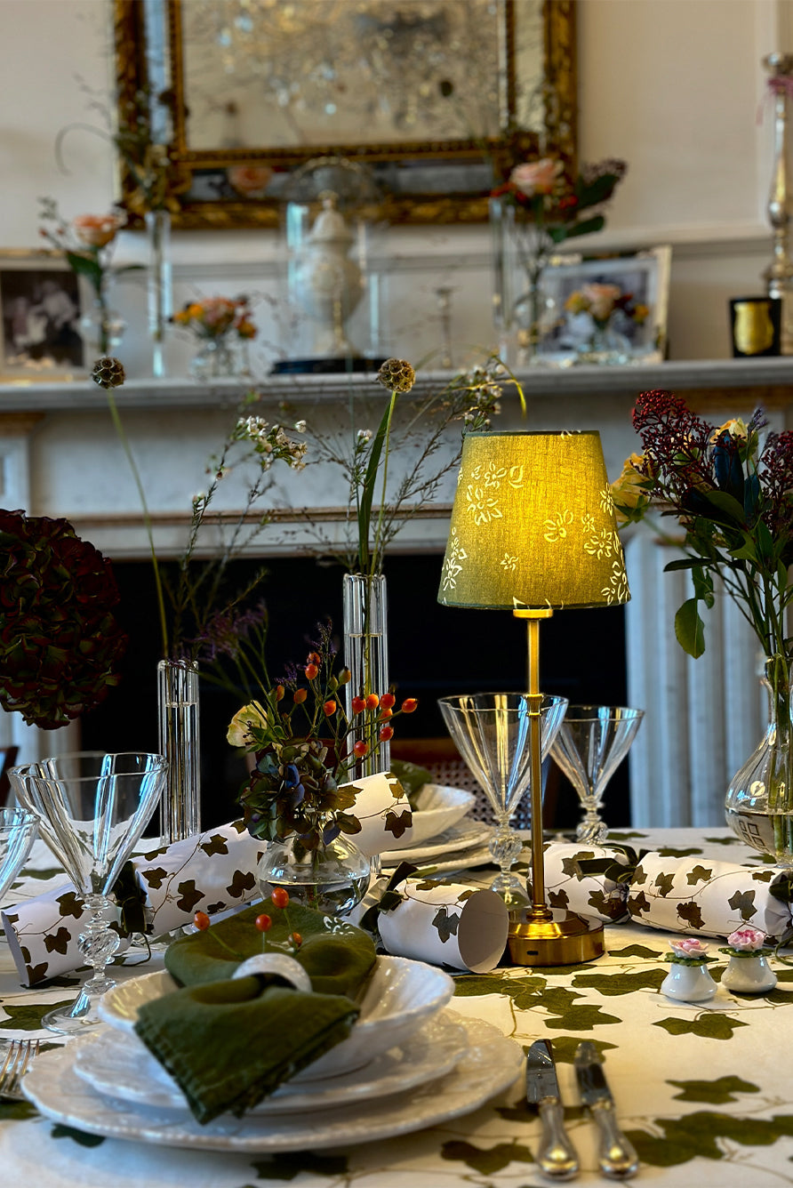The S&Bee Falling Flower Linen Lampshade in Avocado Green is crafted from 100% pure French linen, lovingly revived and expertly made in Scotland.