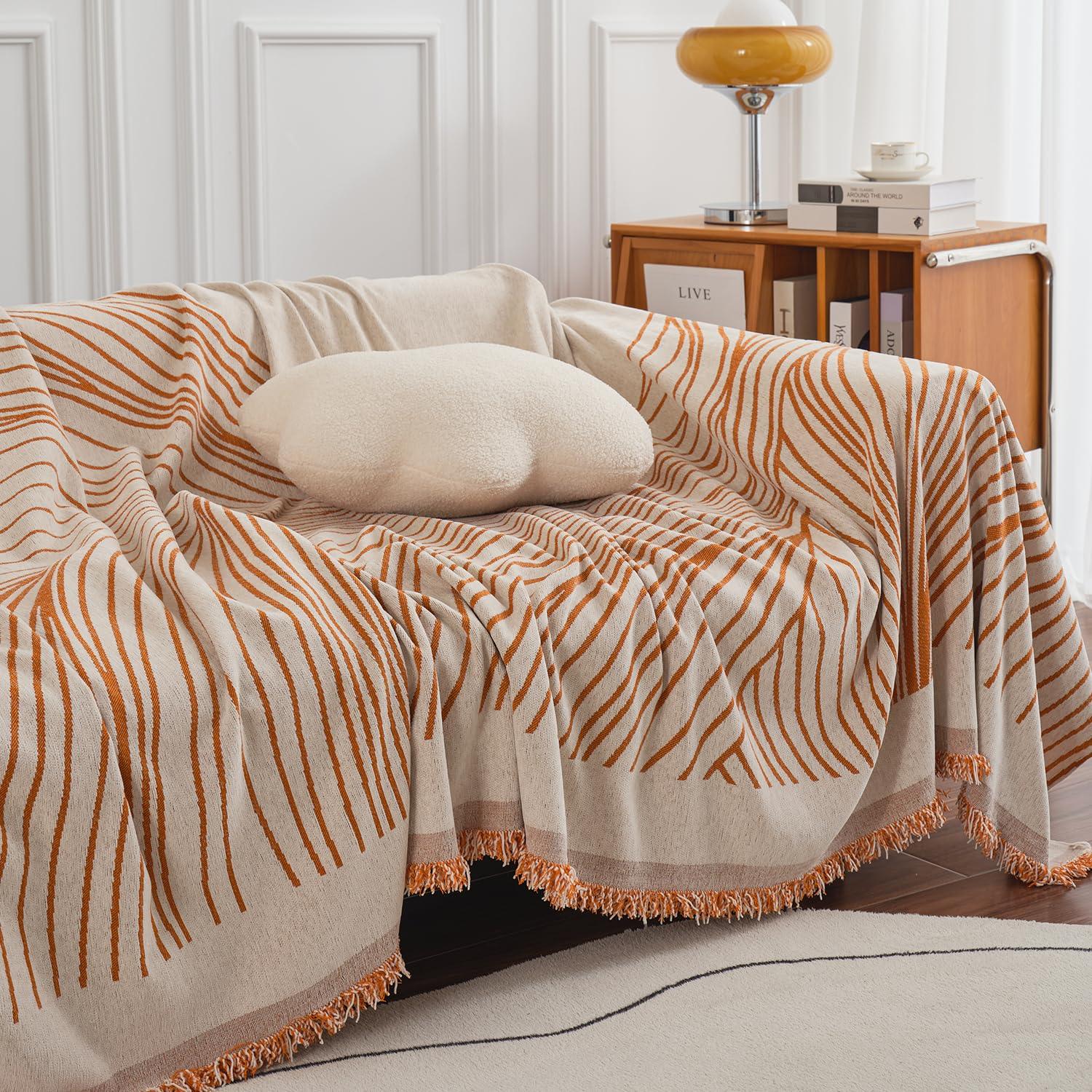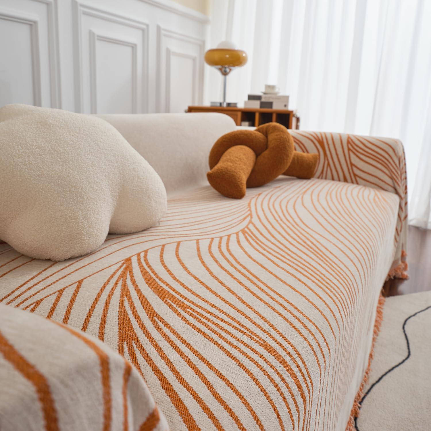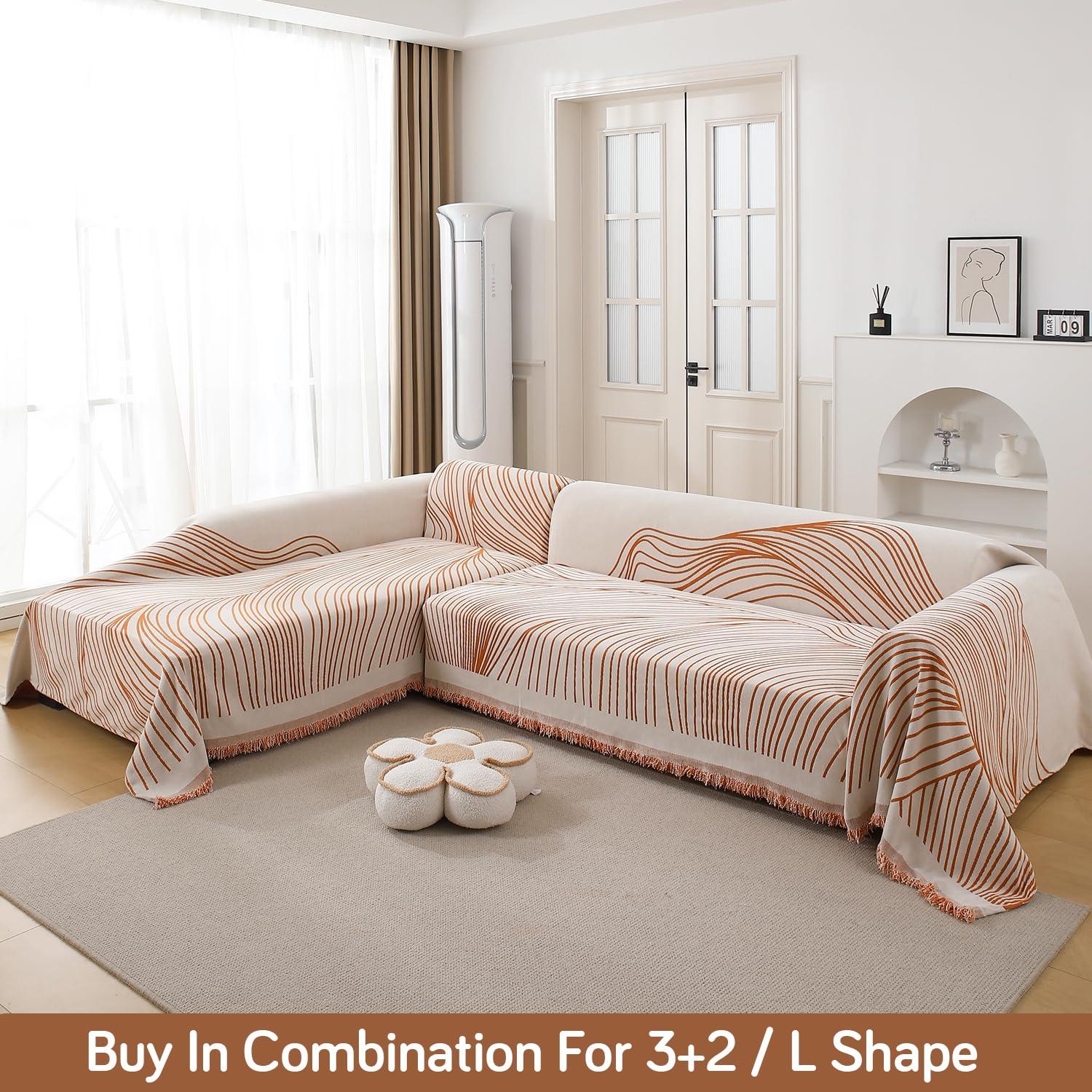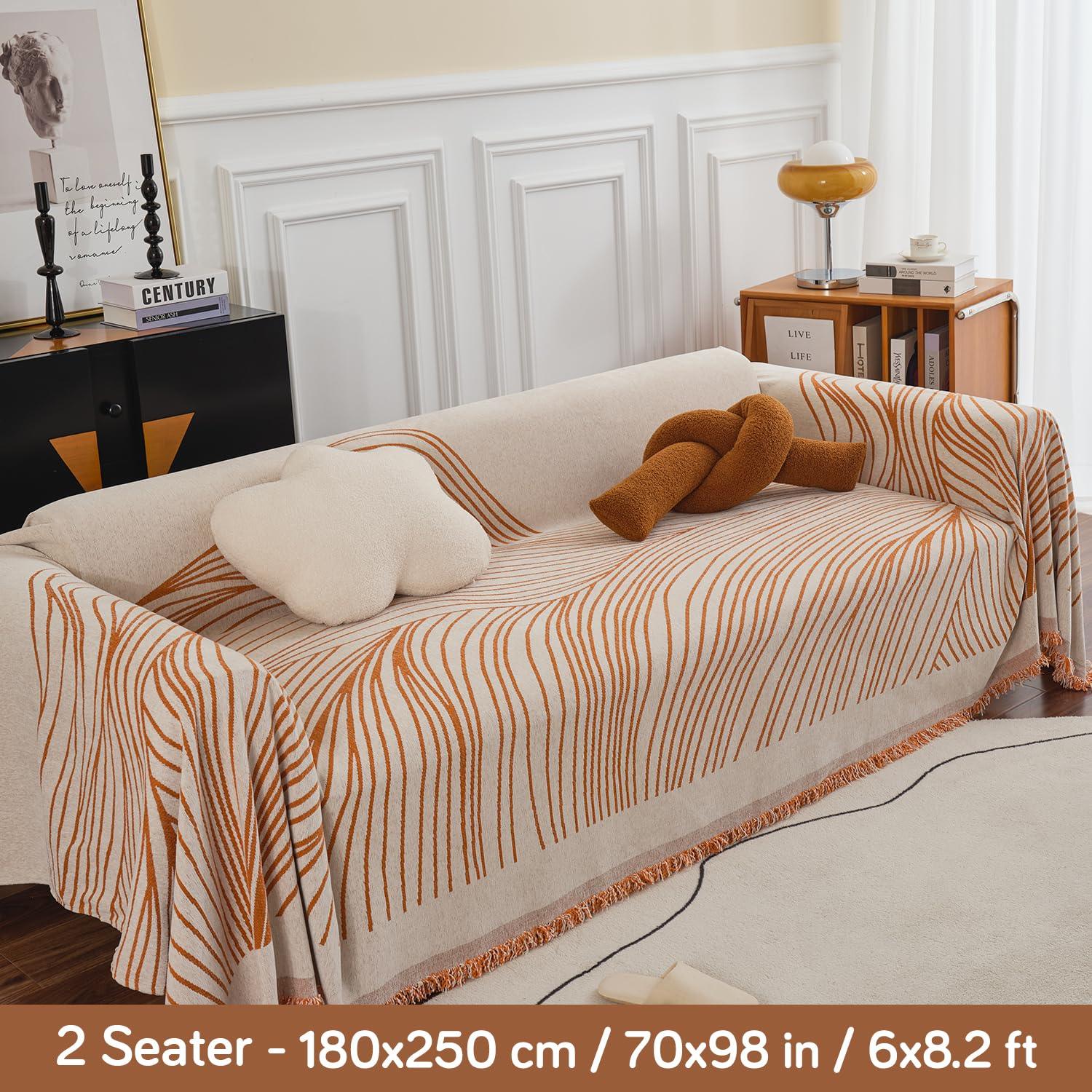 • Burnt Copper, Wavy Print Chenille Sofa Throw Cover for 1/2/3-Seater Sofa