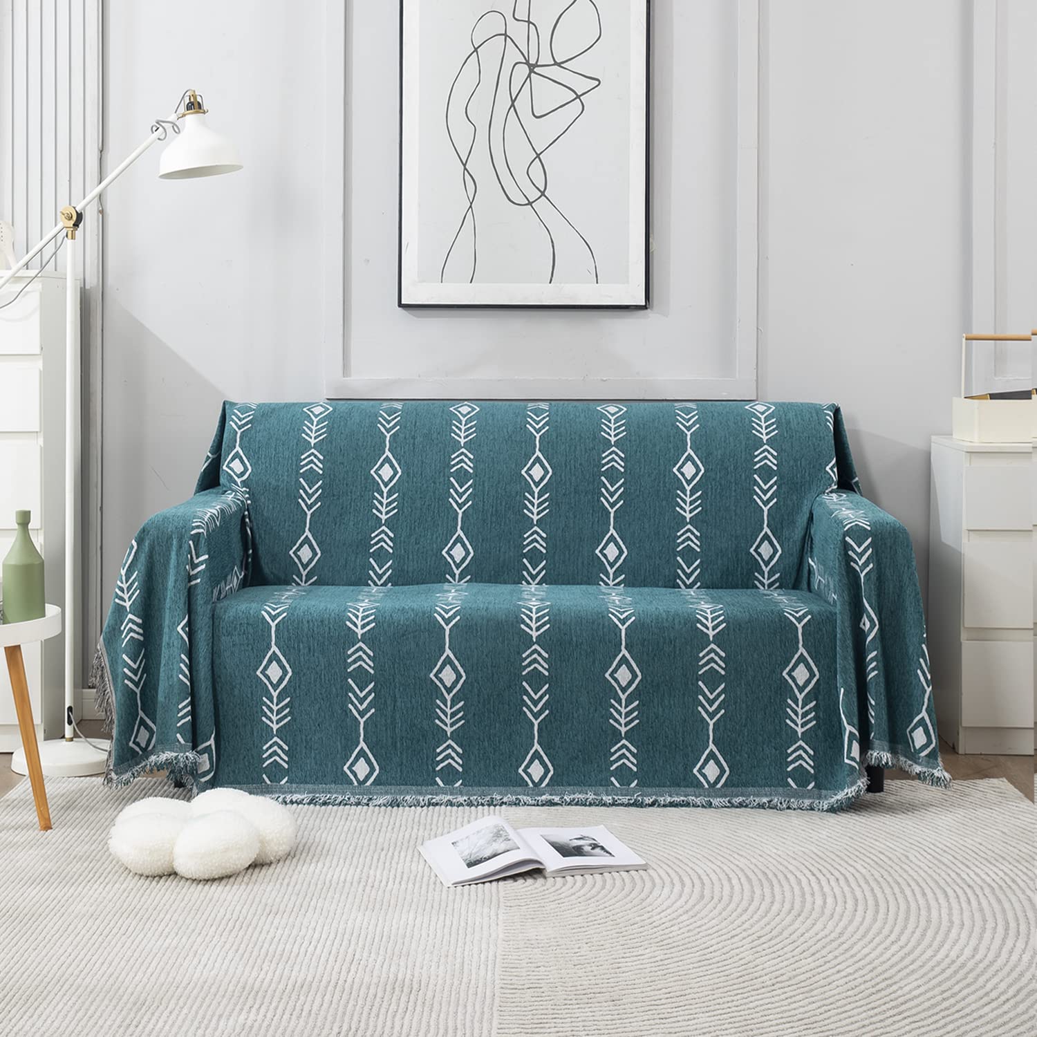 Thick, Soft and Pet Friendly Chenille Sofa Cover Throw, Teal Aztec