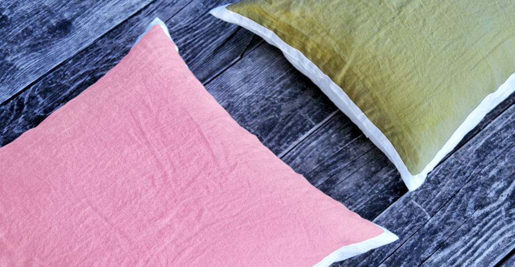 This hand painted rose pink cushion cover is made from 100% Italian linen.