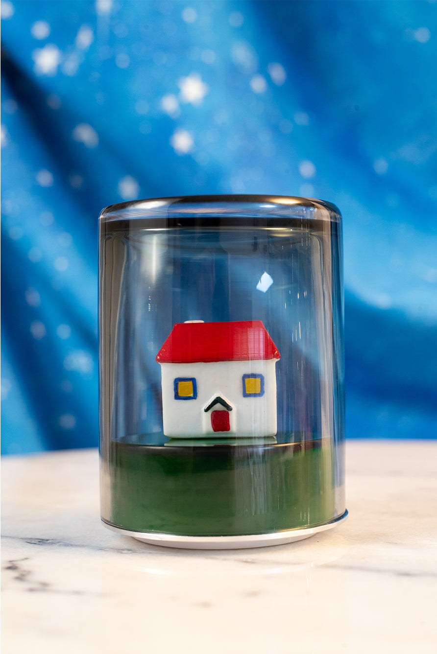 A symbol of home, safety, and belonging, this light captures the universal longing for a place to call your own. Encased in grey-tinted glass, its charming design radiates warmth and simplicity, evoking the quiet joy of life’s essentials. A poignant reminder of what truly matters.