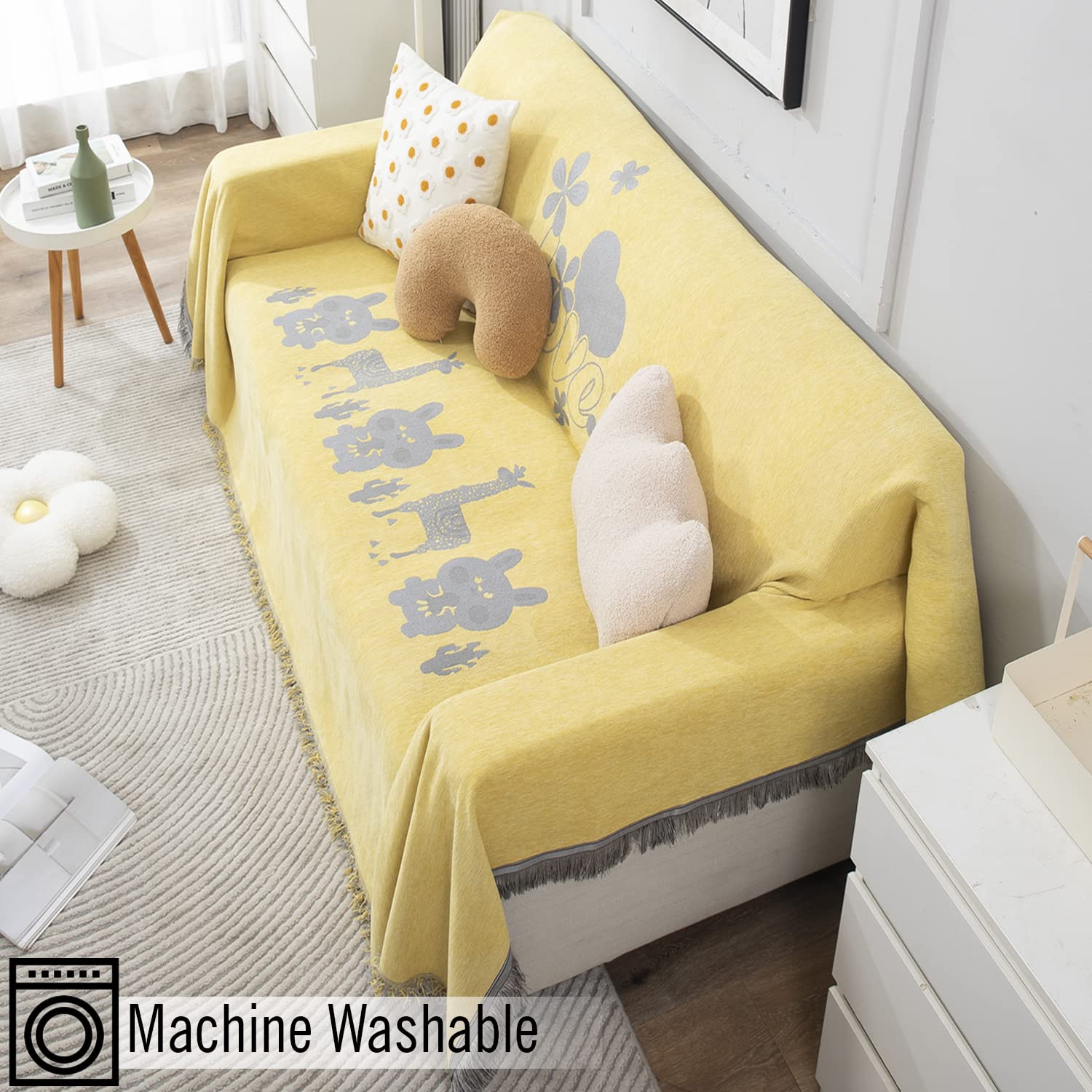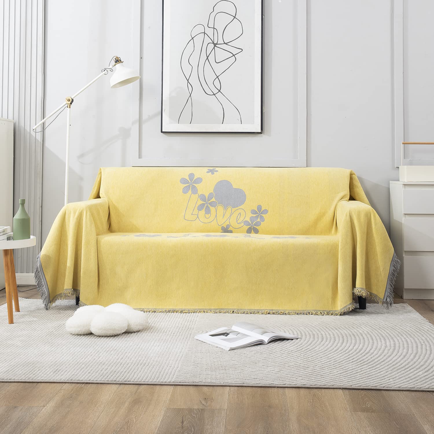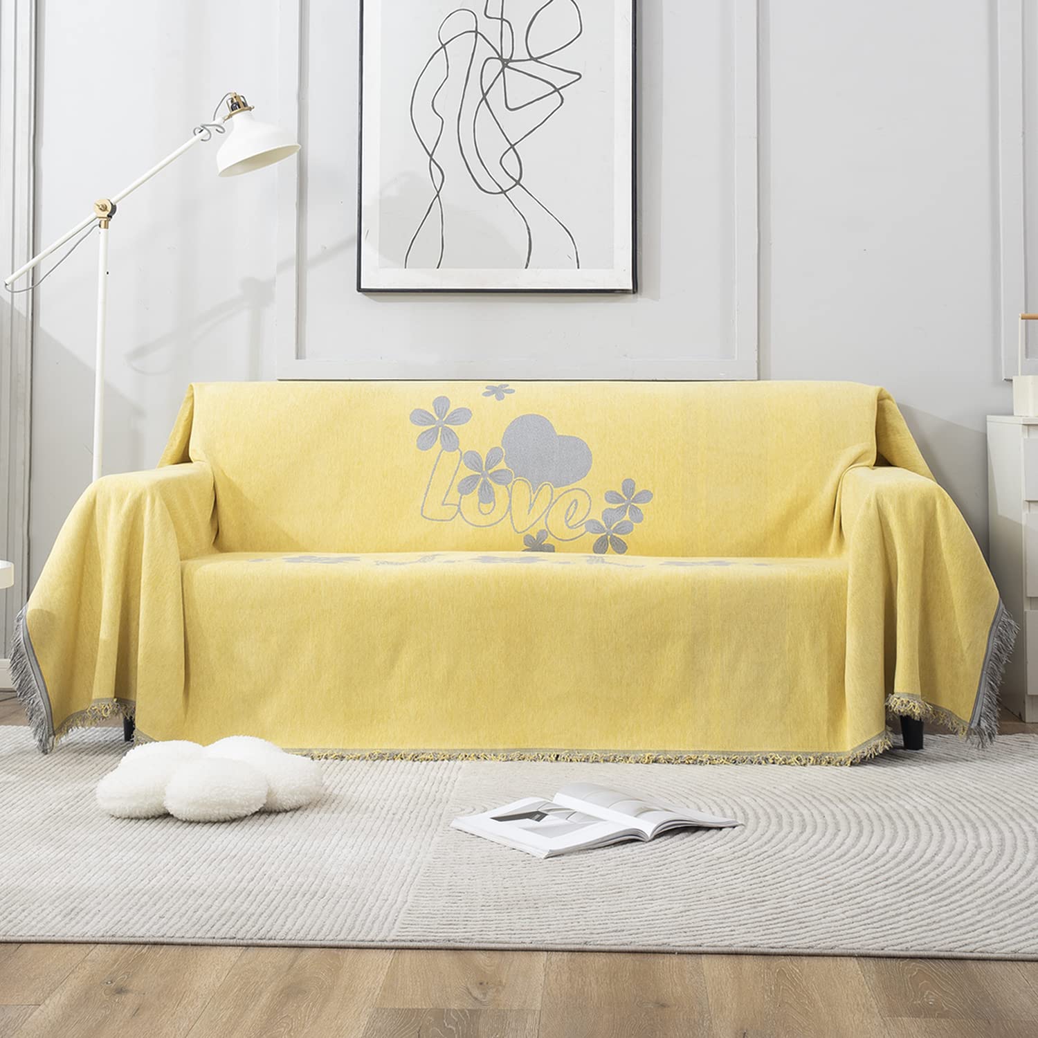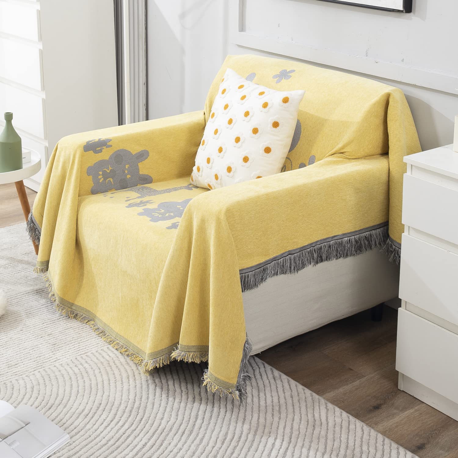 Yellow Nature Chenille Sofa Throw Blanket | 1/2/3 Seater Couch Throw