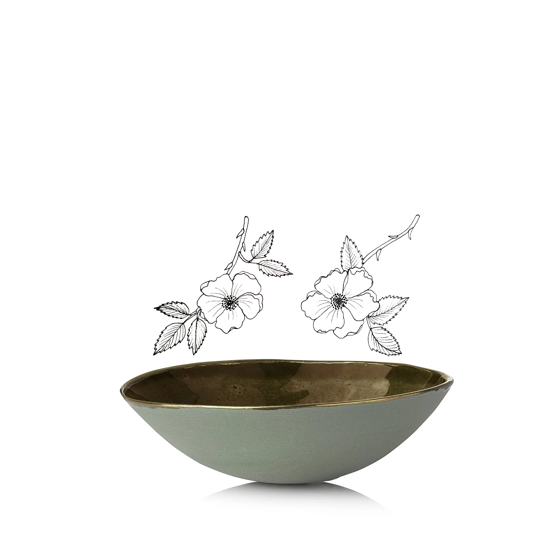 Alone or in a small collection, this delicate, fully painted 16cm ceramic olive green bowl adds a pop of colour to the table or mantle.